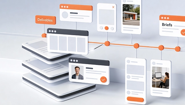 - + Briefing, approvals, and coordination